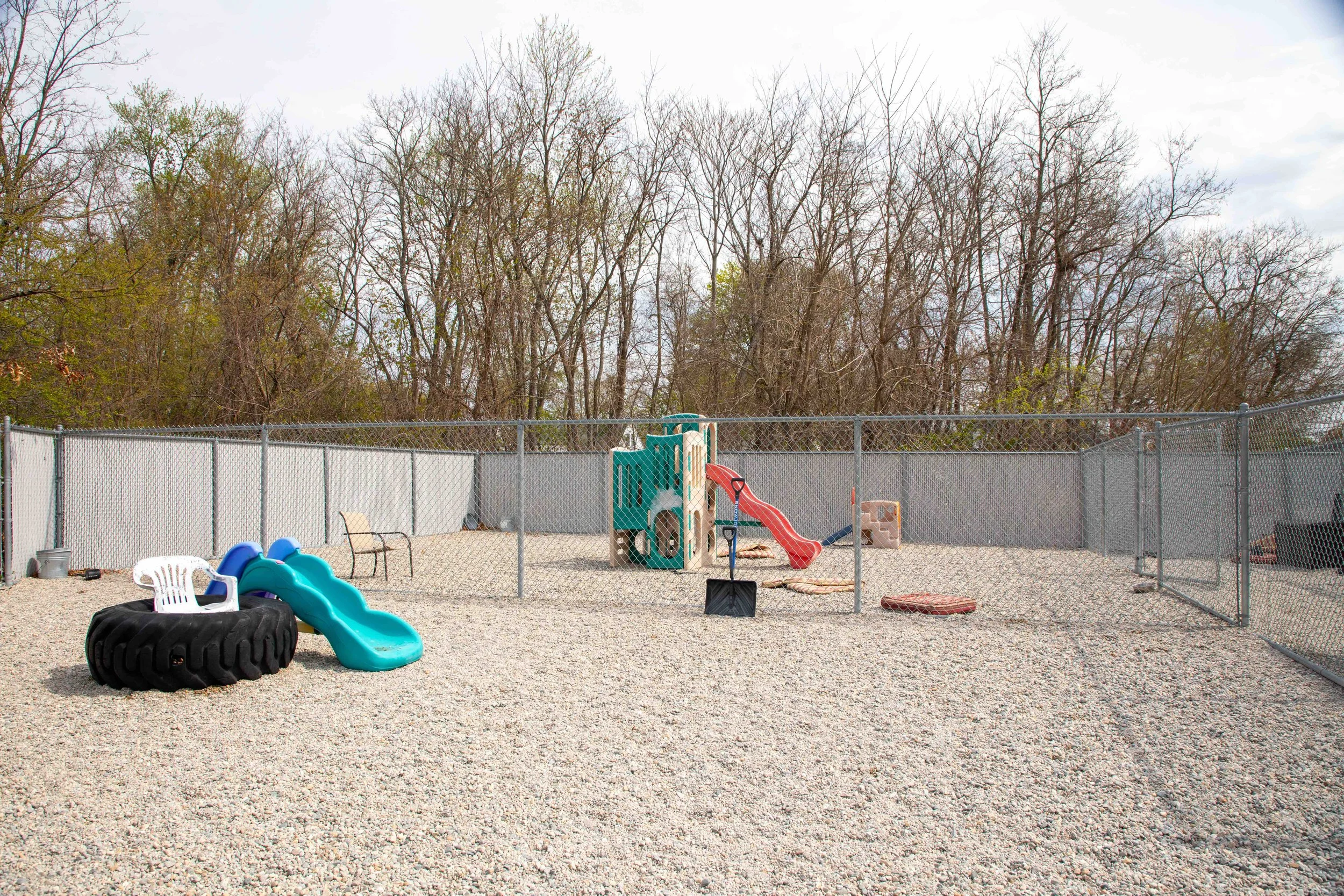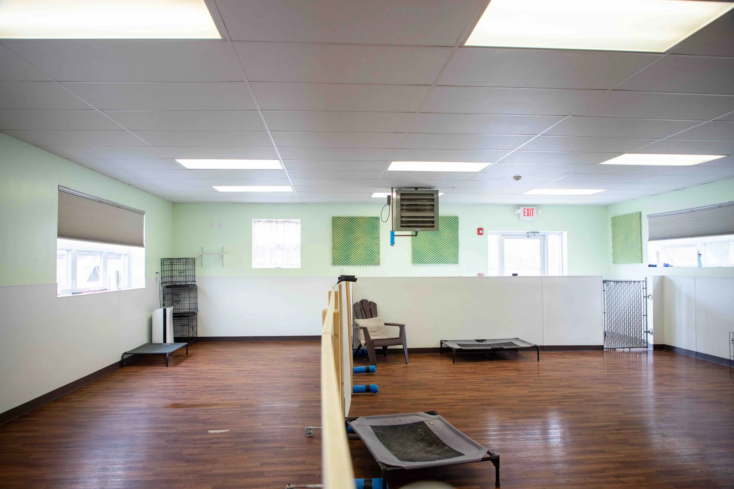 Outside, pups enjoy play structures that promote agility and fun, while inside, they can rest on cozy beds in a climate-controlled environment.